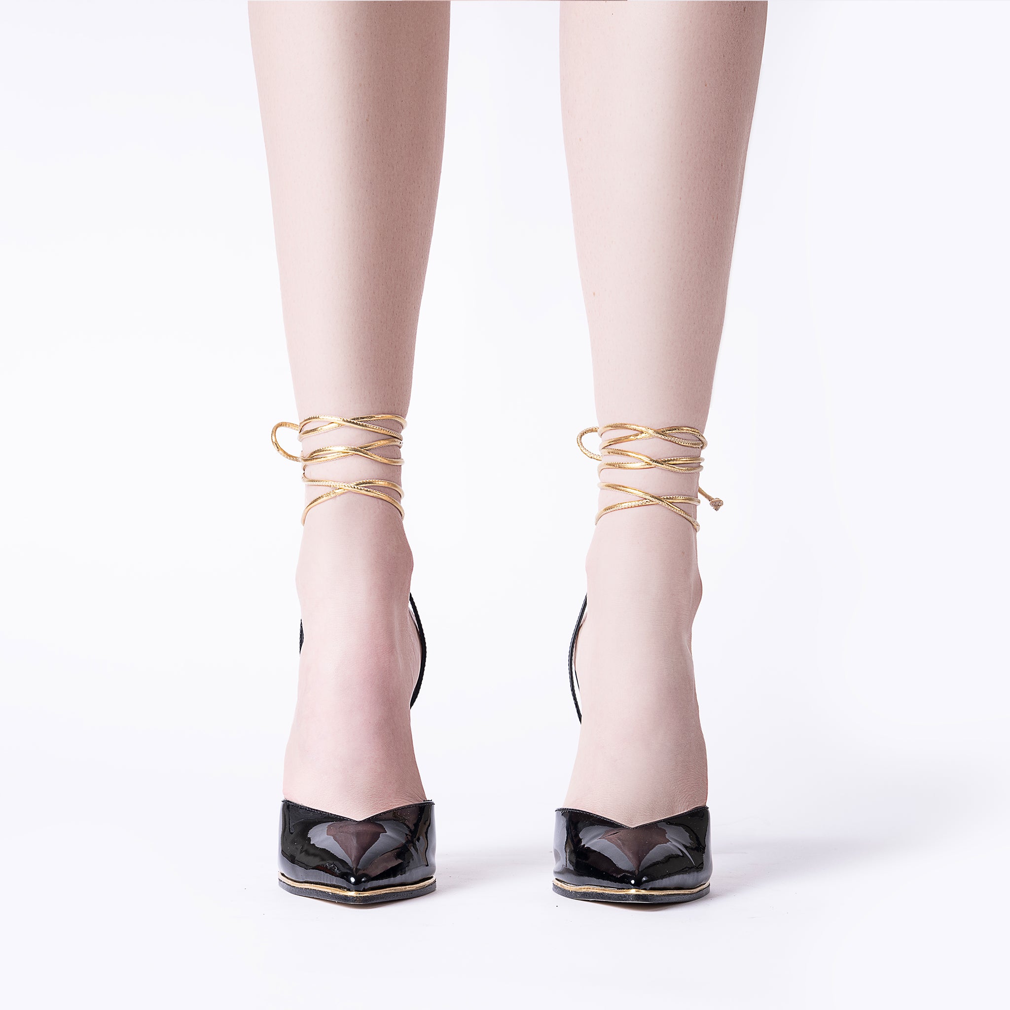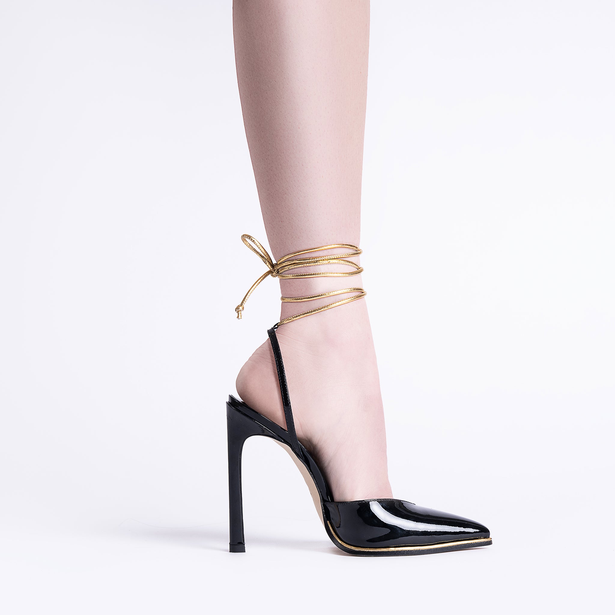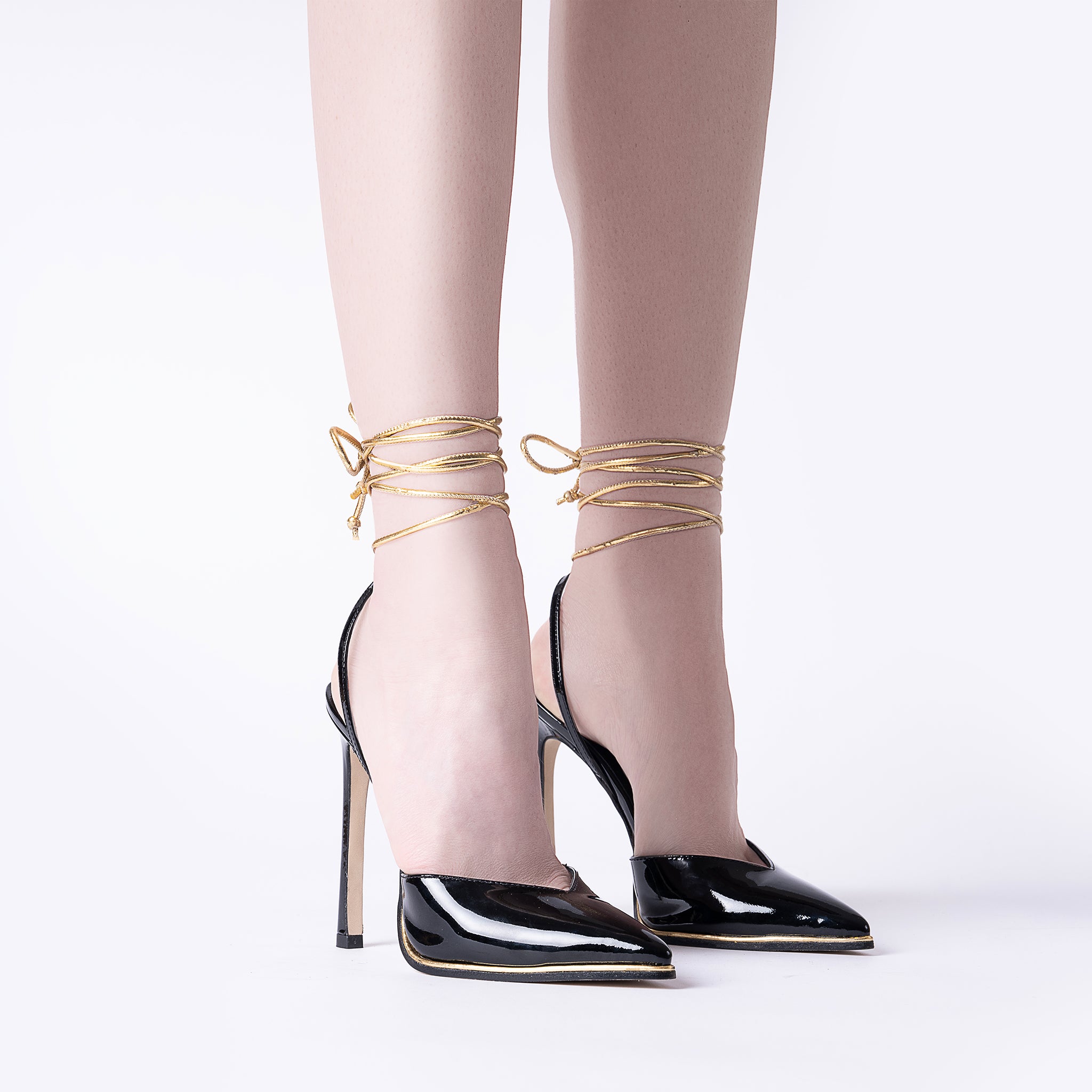 Italian patent leather. Leather ties. Supple goat leather lining and natural leather sole with embossed detail.